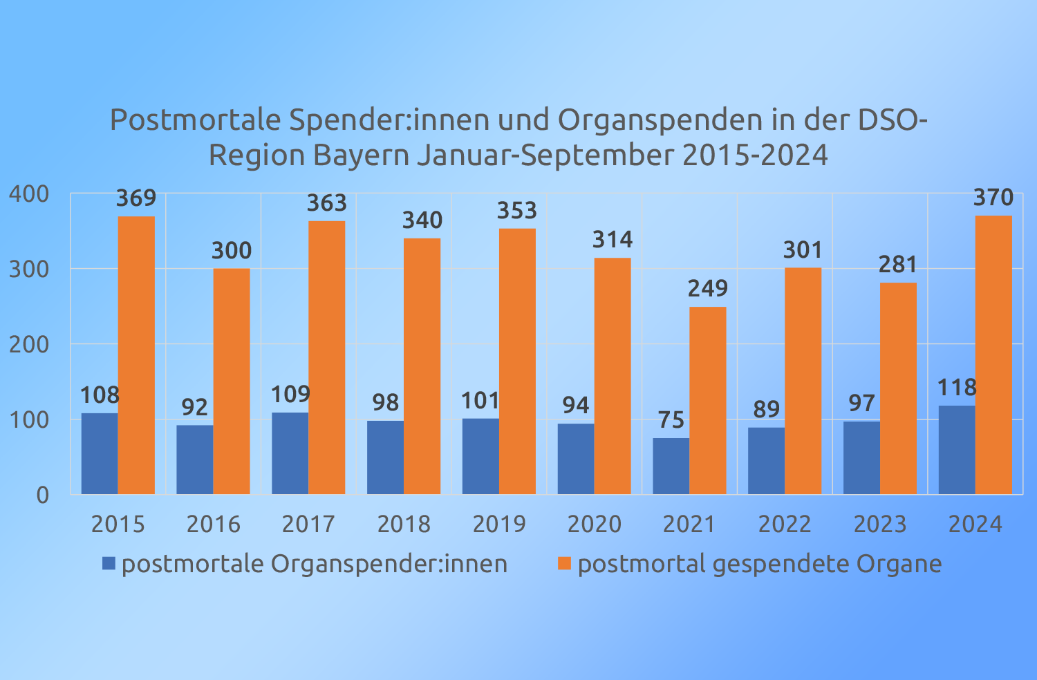 Die Zahl der Organspender in Bayern ist in den ersten neun Monaten dieses Jahres im Vergleich zum Vorjahreszeitraum deutlich gestiegen. Darauf hat Bayerns Gesundheitsministerin Judith Gerlach am Mittwoch hingewiesen. Sie betonte anlässlich des am Donnerstag in Frankfurt am Main beginnenden Jahreskongresses der Deutschen Stiftung Organtransplantation (DSO): „In diesem Jahr gab es in Bayern schon 122 postmortale Organspender. Nach Angaben der DSO waren es im gesamten Jahr zuvor nur 97. Die im Vorjahr noch leicht rückläufige Zahl an postmortal gespendeten Organen stieg von 281 auf heuer 370 – also um knapp ein Drittel.“
