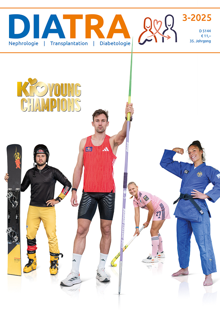 In der neuen Ausgabe von DIATRA geht es um Entwicklungen und Geschichten rund um Transplantationsmedizin, Nephrologie und Diabetologie. Ein besonderer Moment war in diesem Jahr die 100.000. Nierentransplantation in Deutschland – ein Zeichen dafür, wie vielen Menschen mit einer Spende neuer Lebensraum eröffnet wurde. Auch Jubiläen wie 30 Jahre Transplantationszentren in Dresden und Regensburg oder 25 Jahre Fachklinik Bad Heilbrunn machen deutlich, wie wichtig verlässliche Strukturen und engagierte Teams für Patient:innen sind.