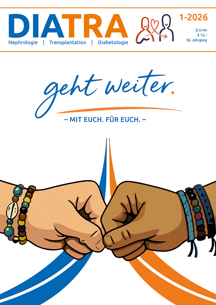 Für uns persönlich steht diese Ausgabe für Aufbruch, Zusammenhalt und einem klaren Blick nach vorn. Unter dem Leitgedanken „Mit Euch. Für Euch.“ greifen wir Themen auf, die viele Menschen in Nephrologie, Transplantation und Diabetologie unmittelbar betreffen – verständlich, sorgfältig recherchiert und nah an den Erfahrungen der Betroffenen.